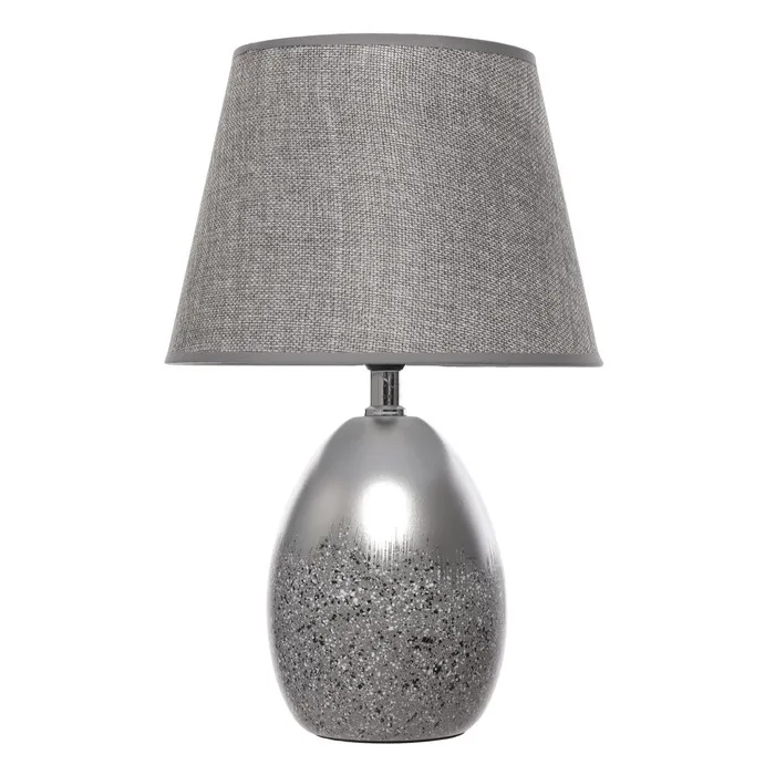 Эта настольная лампа в серо-серебристом исполнении станет стильным элементом вашего интерьера. Она добавит изысканности и уютной атмосферы в любое помещение. Керамическое основание и текстильный абажур обеспечивают мягкое и комфортное освещение, идеальное для чтения или отдыха.