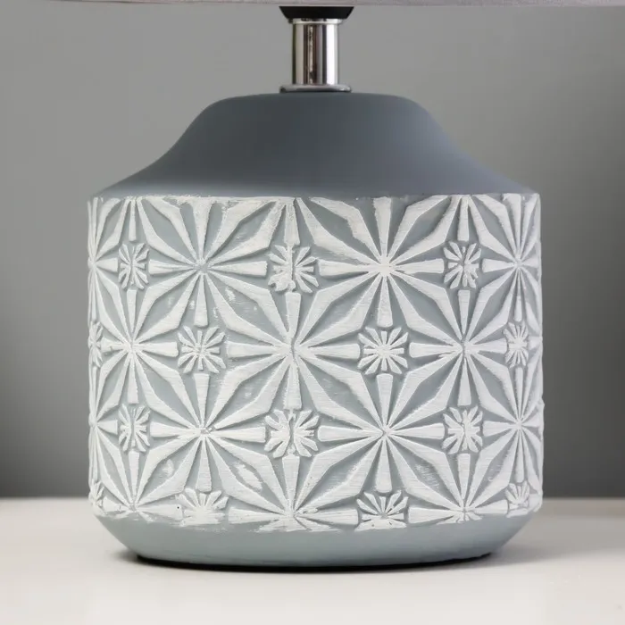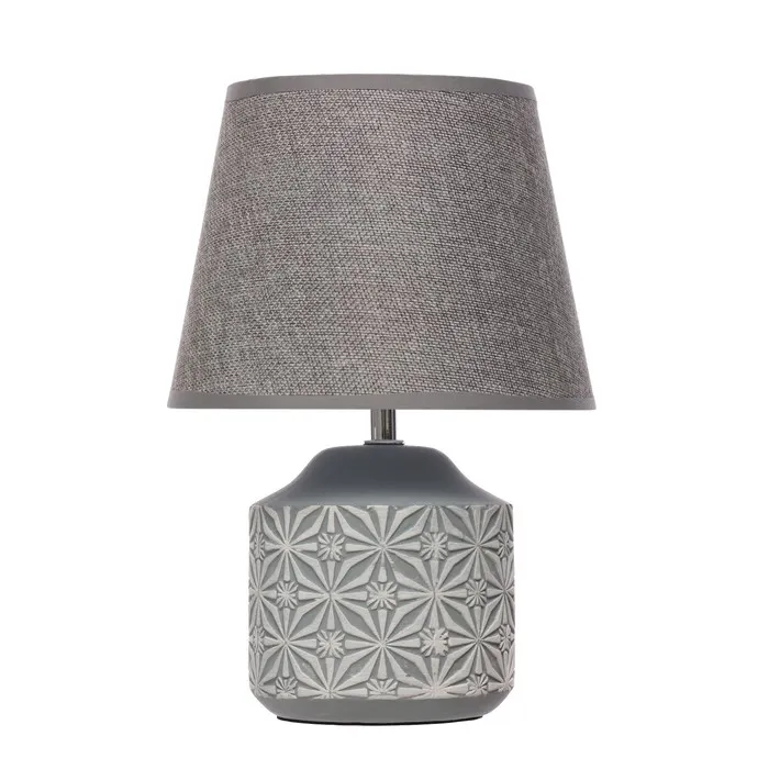 Эта настольная лампа станет стильным акцентом в вашем интерьере, добавляя уют и элегантность в любое пространство. С серым текстильным абажуром и прочным керамическим основанием, она идеально подходит для создания комфортного освещения в спальне, гостиной или рабочем кабинете.