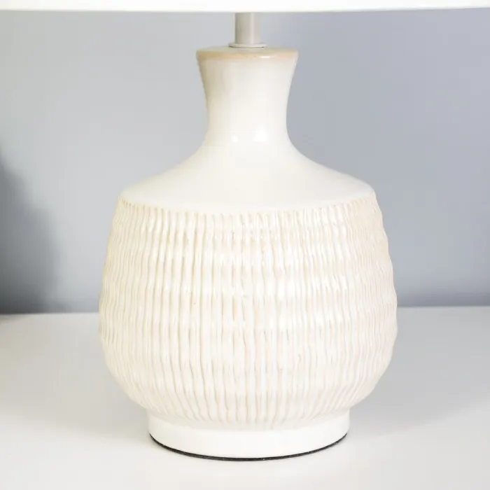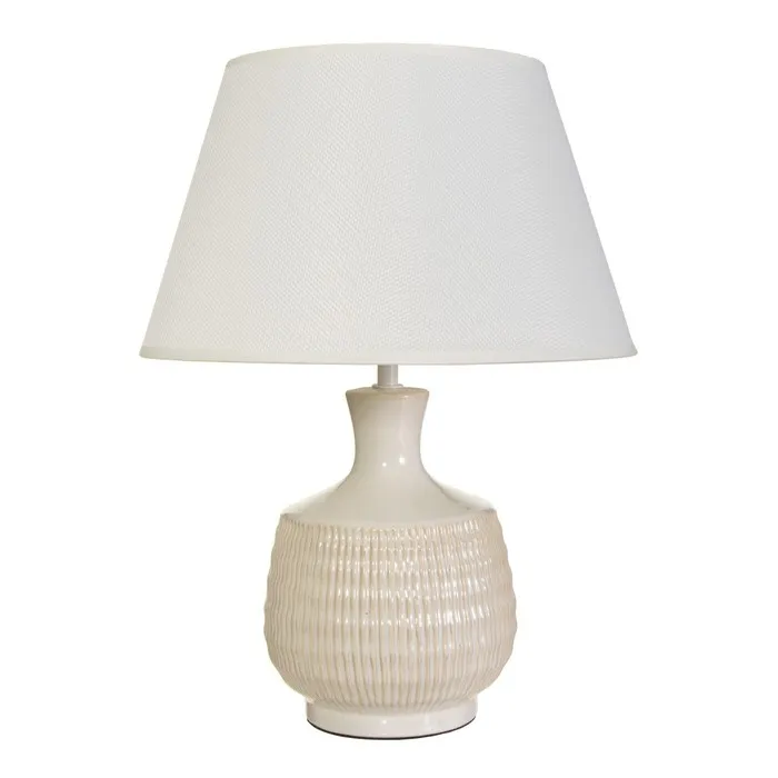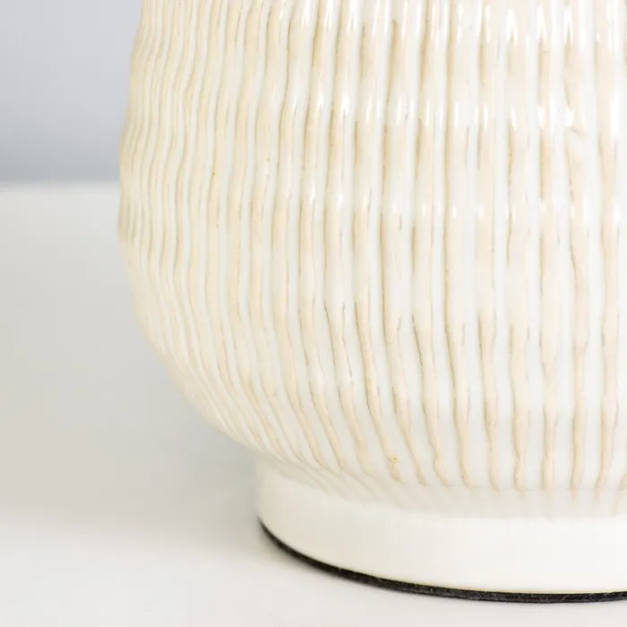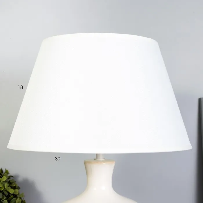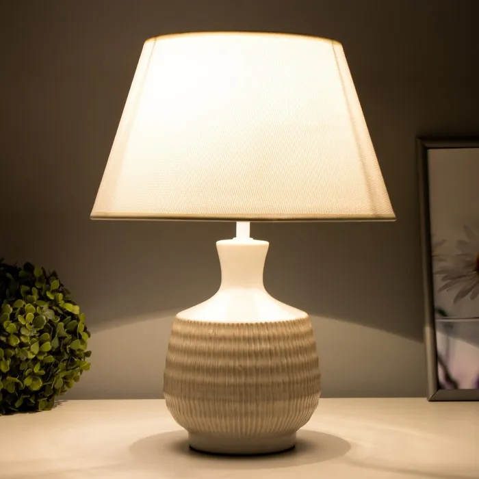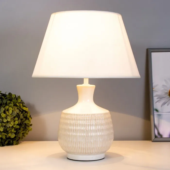 - Керамическое основание обеспечивает надежность и долговечность, а текстильный абажур создает мягкое и приятное освещение.