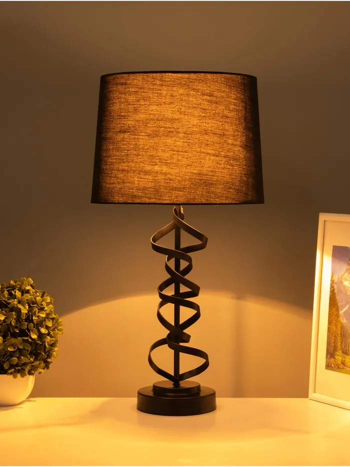 - Современный стиль: Чёрное металлическое основание и трапециевидный абажур в тёмных тонах придают лампе изысканный вид, который отлично впишется в любой интерьер.