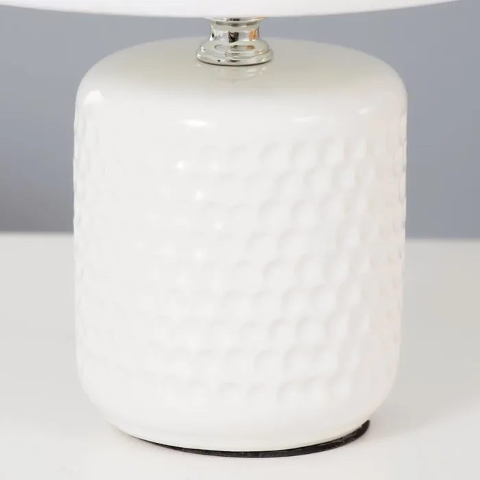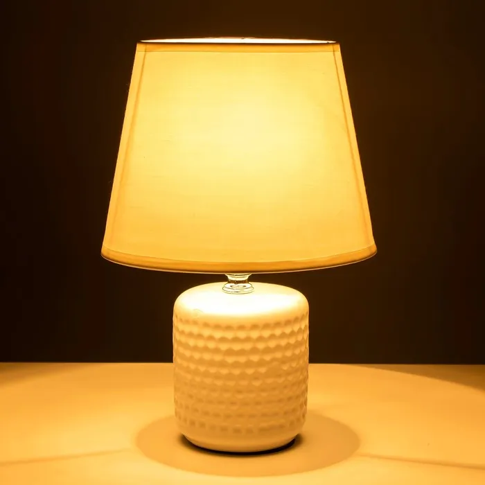 Эта настольная лампа станет прекрасным дополнением вашего интерьера, привнося свет и уют в любое помещение. С белым керамическим основанием и текстильным абажуром, она идеально подходит для создания комфортной атмосферы, будь то рабочий стол или уютный уголок для чтения.