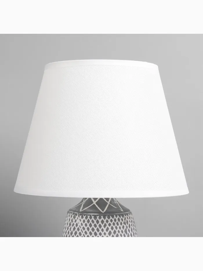 Эта настольная лампа с элегантным серым основанием добавит изысканности в ваш интерьер. Она идеально подходит для создания уютной атмосферы в любом помещении, будь то спальня, гостиная или кабинет. Стильный текстильный абажур наполняет пространство мягким светом, создавая комфорт для чтения и отдыха.