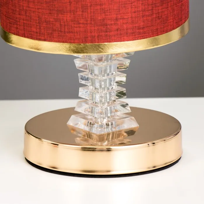 Эта настольная лампа с золотым основанием станет изысканным дополнением вашего интерьера. Она идеально подходит для создания уютной атмосферы в любом помещении, добавляя нотку классики и элегантности. Цилиндрический текстильный абажур в бордовых тонах мягко рассеивает свет, создавая приятное освещение для чтения или отдыха.