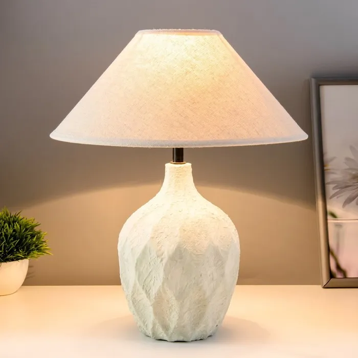 - Керамическое основание в зелёном оттенке придаёт лампе прочность и изысканность, а текстильный абажур создает мягкое и приятное освещение.