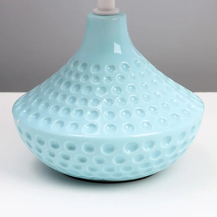 Эта настольная лампа с нежным голубым основанием станет стильным акцентом в вашем доме. Она отлично подходит для создания уютной атмосферы в спальне, кабинете или гостиной. Конусный абажур направляет свет вверх, обеспечивая мягкое и комфортное освещение для чтения или отдыха.