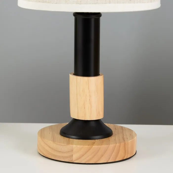 - Металлическое и деревянное основание в черном и бежевом цветах придает лампе современный вид.