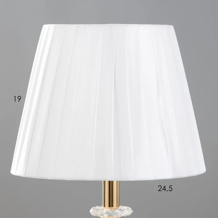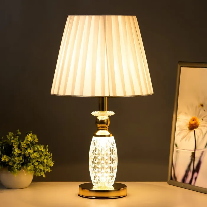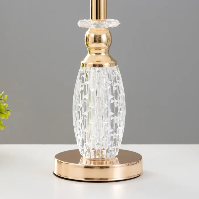 - Стеклянное основание в золотом цвете придаёт лампе элегантный вид, позволяя ей органично вписаться в различные стили интерьера.