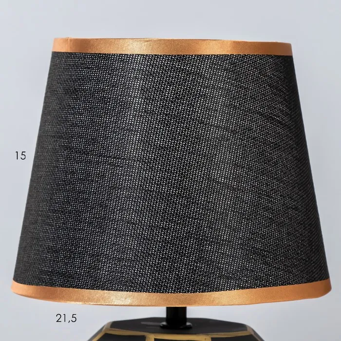 Эта настольная лампа с элегантным черно-золотым дизайном станет ярким акцентом в вашем интерьере. Стильный абажур в форме трапеции и керамическое основание придают ей классический вид, который отлично впишется в любую обстановку. Она идеально подходит для создания уютной атмосферы в спальне, гостиной или рабочем кабинете.