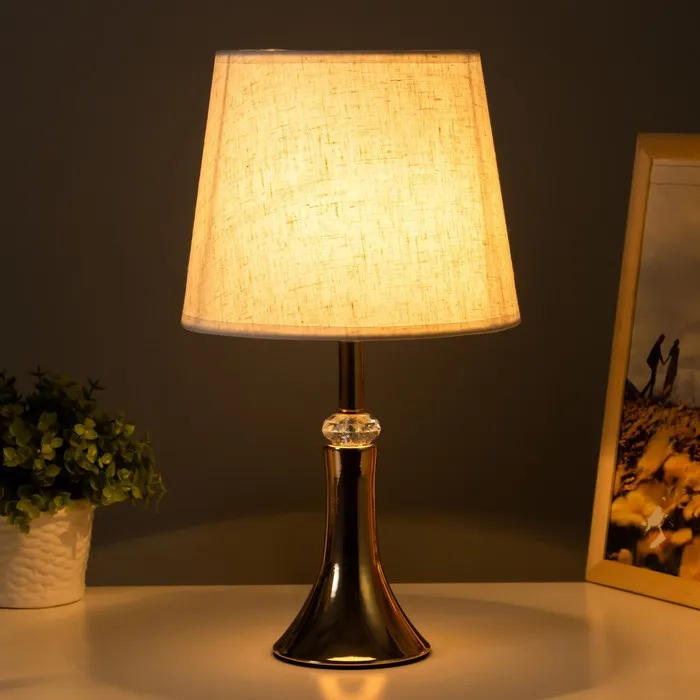 - Эстетичный дизайн: Золотое основание и светлый текстильный абажур гармонично сочетаются, добавляя изысканности.