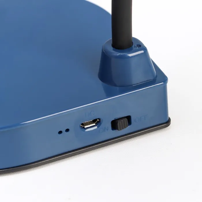 Настольная лампа с современным синим дизайном станет стильным акцентом в любом интерьере. Она не только освещает пространство, но и создает атмосферу комфорта, идеально подходя для работы, учебы или отдыха.