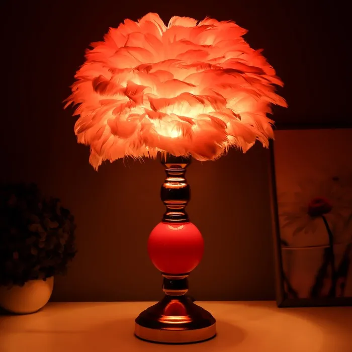 Настольная лампа с перьевым абажуром станет стильным дополнением вашего интерьера, добавляя нотки элегантности и утонченности. Этот светильник прекрасно подходит для создания уютной атмосферы в спальне или гостиной, а также станет оригинальным акцентом в вашем кабинете.