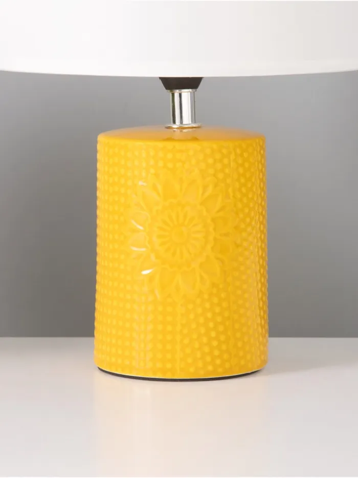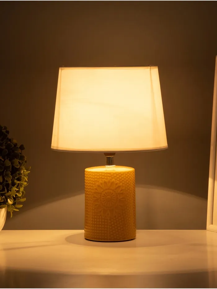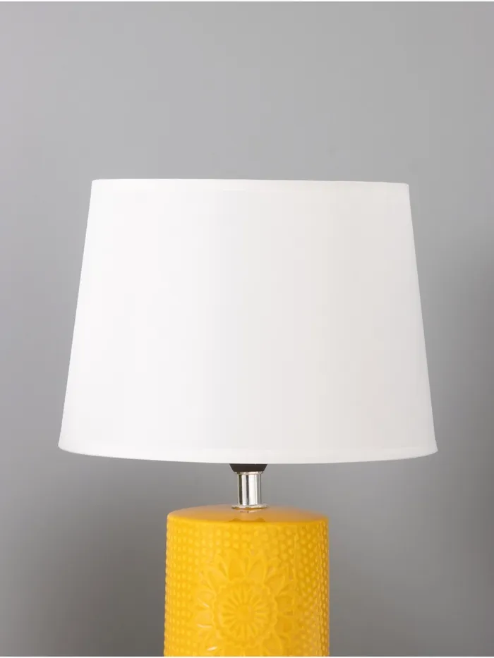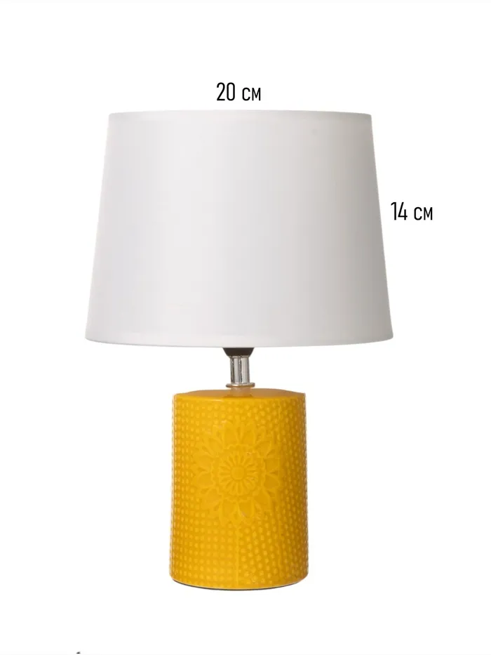 • Яркий дизайн: Лампа с желтым керамическим основанием и светлым абажуром станет настоящим украшением вашего стола или тумбы, создавая атмосферу уюта и тепла.