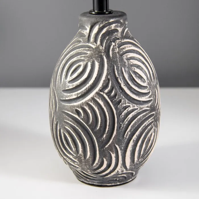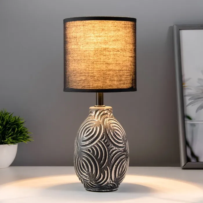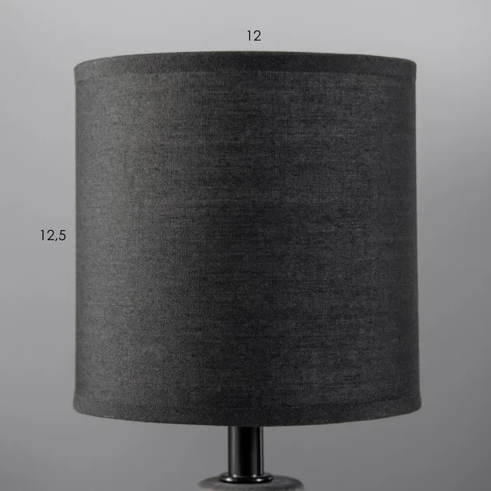 - Текстильный абажур тёмных тонов равномерно рассеивает свет, создавая приятную атмосферу.