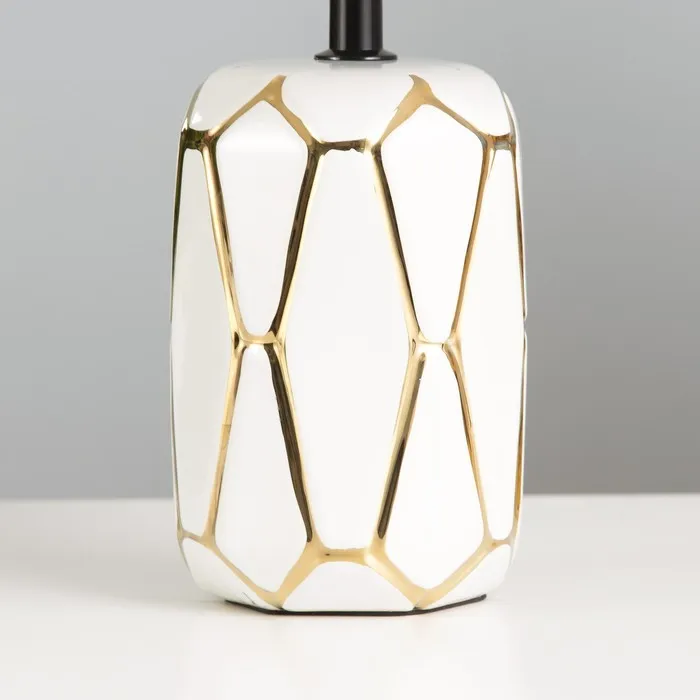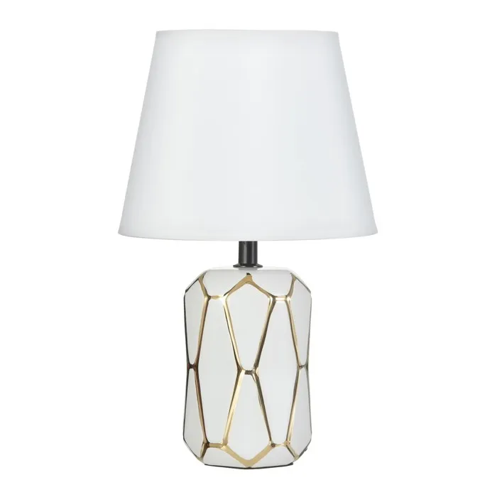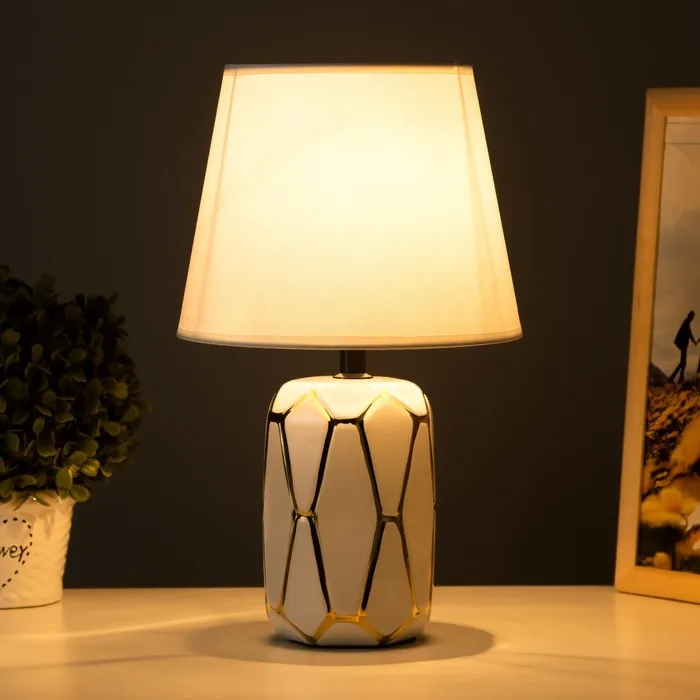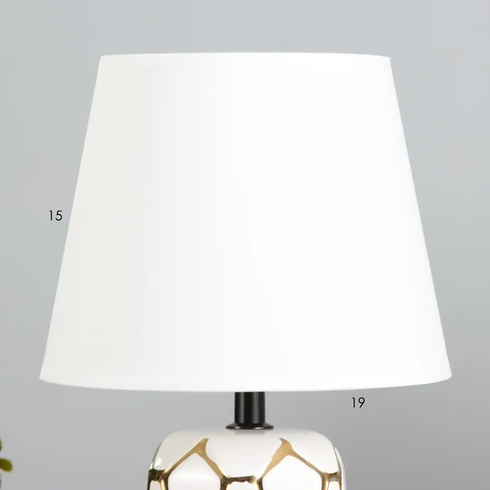 Настольная лампа с керамическим основанием и конусным абажуром добавит стиль и уют в любое помещение. С размерами 20×20 см и высотой 33 см, она прекрасно впишется в интерьер спальни, гостиной или рабочего кабинета. Двухцветное исполнение в бело-золотистых тонах создает элегантный акцент, а светлый рассеиватель обеспечивает мягкое и равномерное освещение.