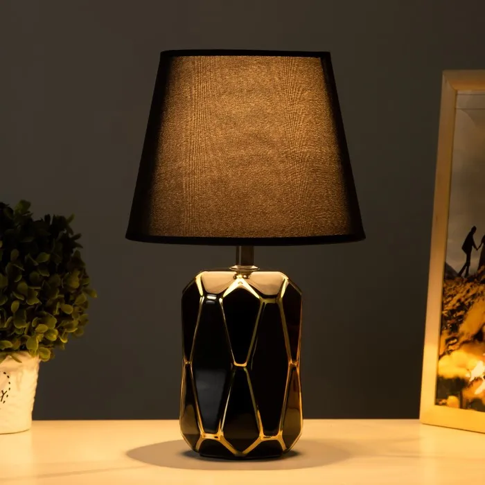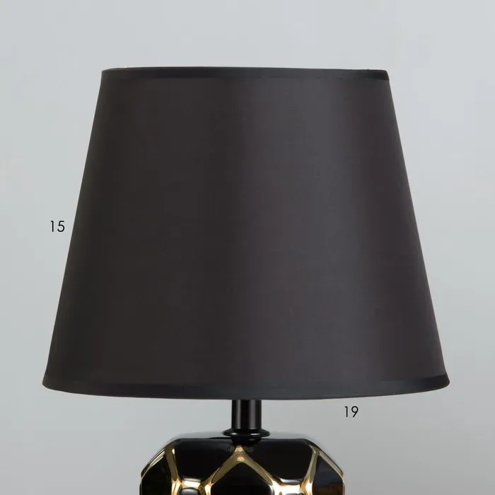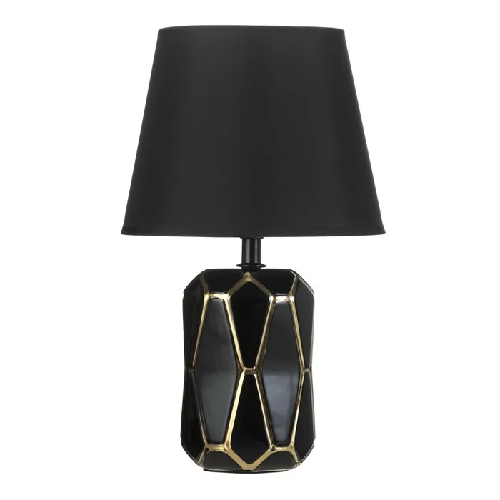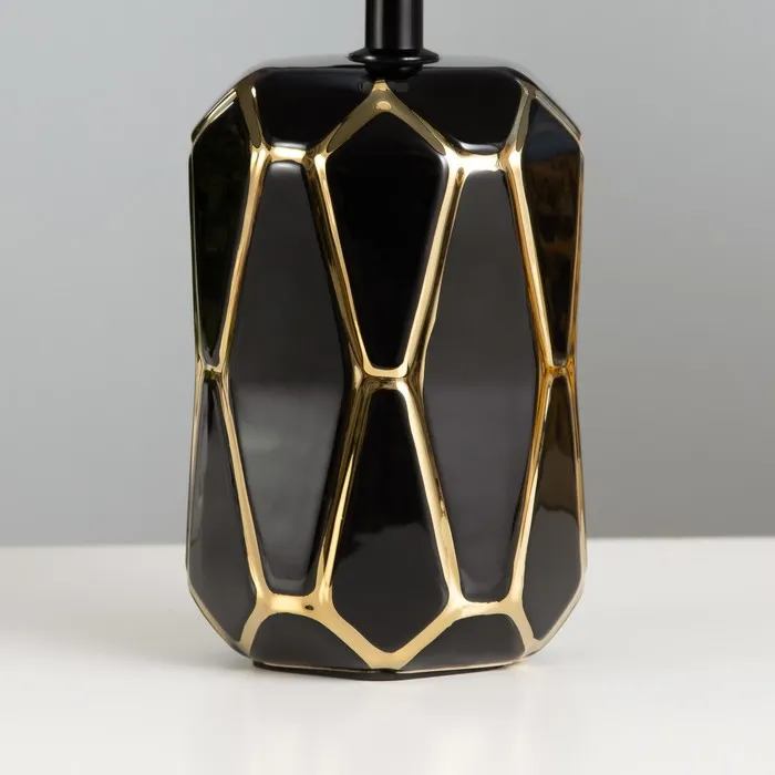 Настольная лампа с керамическим основанием и конусным абажуром в черно-золотистых тонах станет стильным акцентом в вашем интерьере. С размерами 20×20 см и высотой 33 см, она идеально подходит для создания уютной атмосферы в спальне, гостиной или офисе. Матовый черный рассеиватель мягко рассеивает свет, добавляя элегантности и уюта.