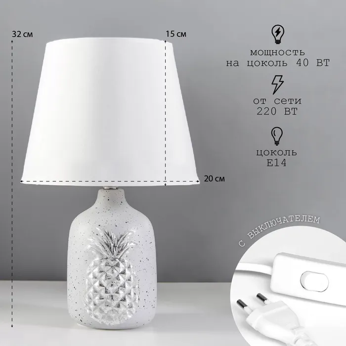 Настольная лампа RISALUX «Ананас», Е14, 40 Вт, серый/серебро, 20×20×32 см — Характеристики