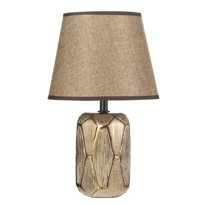 Эта настольная лампа станет отличным дополнением вашего интерьера, внося уют и стиль в любое помещение. С керамическим основанием шоколадно-золотистого цвета и конусным рассеивателем, она создаёт мягкое и приятное освещение, подходящее для чтения или отдыха.