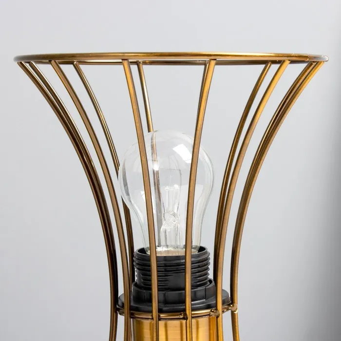 Эта настольная лампа станет элегантным дополнением вашего пространства. Золотое основание и нестандартный плафон придают ей уникальный стиль, а направленный вверх свет создает атмосферу уюта и тепла.