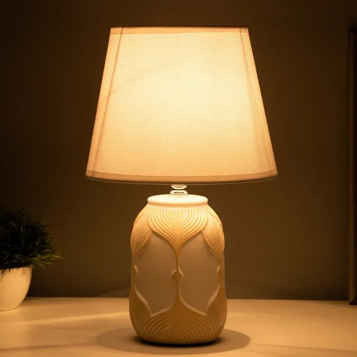 Эта настольная лампа с белым керамическим основанием станет отличным акцентом в вашем интерьере, создавая атмосферу уюта и стиля. Конусный текстильный абажур направляет свет вверх, обеспечивая мягкое и комфортное освещение для чтения или отдыха.