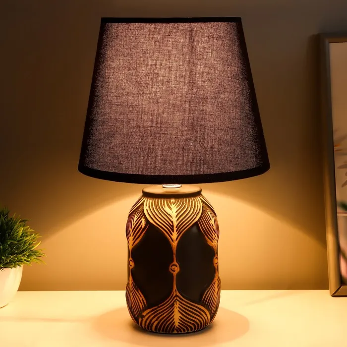 Эта настольная лампа с элегантным черно-золотым дизайном станет стильным акцентом в вашем интерьере. Она не только освещает пространство, но и придаёт ему изысканность. Конусный текстильный абажур направляет свет вверх, создавая тёплую атмосферу для чтения или отдыха.