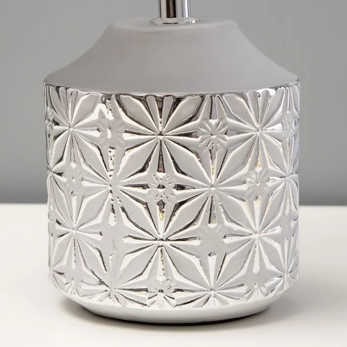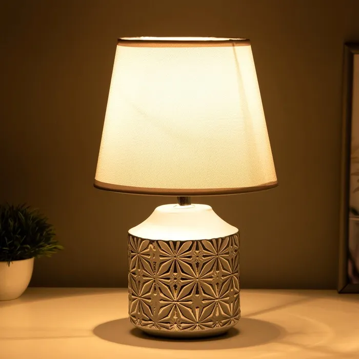 Эта настольная лампа станет стильным акцентом в вашем интерьере. Серое керамическое основание в сочетании с текстильным абажуром создает атмосферу уюта и современности, а направленный вверх свет наполняет пространство мягким и комфортным освещением.