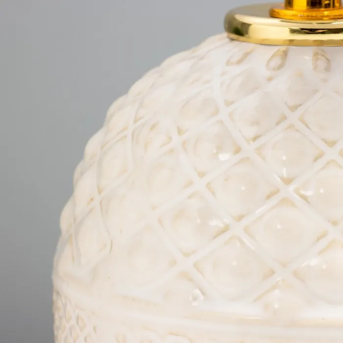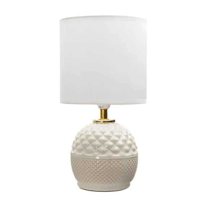 Эта настольная лампа станет стильным акцентом в вашем интерьере. Сочетание бежевого керамического основания и светлого текстильного абажура создает атмосферу уюта и спокойствия. Идеально подходит для размещения на прикроватной тумбочке или рабочем столе, она обеспечит мягкий свет, необходимый для чтения или работы.