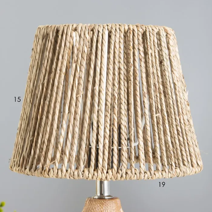 - Конусный текстильный абажур в коричневом оттенке создает атмосферу тепла и уюта.