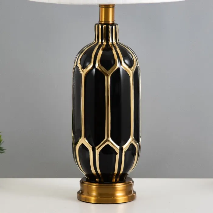 Эта настольная лампа в черно-золотом исполнении станет стильным акцентом в вашем интерьере. Высота 55 см и элегантные линии делают её идеальным выбором для спальни, гостиной или кабинета. Лампа создаст атмосферу уюта и комфорта, освещая пространство мягким светом.