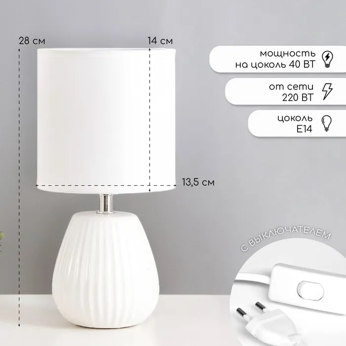 Настольная лампа RISALUX «Арнелла», Е14, 40 Вт, белый, 14×14×28 см — Характеристики