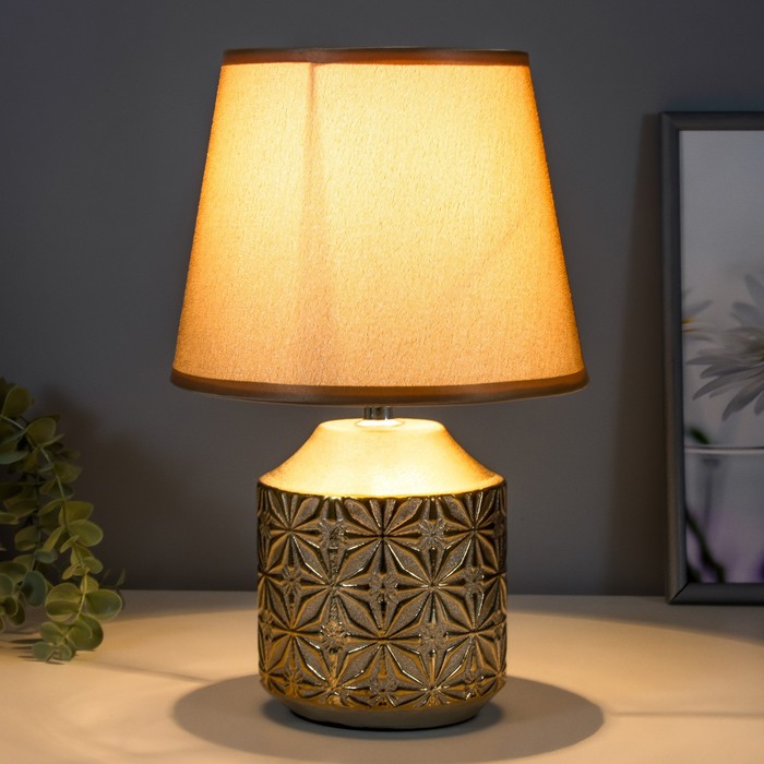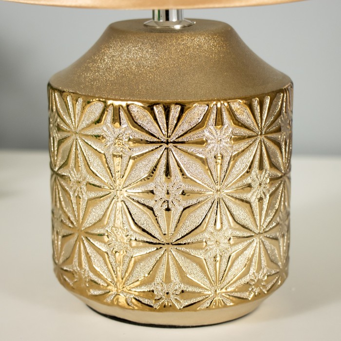 - Керамическое основание: Прочное и устойчивое основание из керамики в золотом цвете обеспечивает надежную опору. Материал долговечен и приятен на ощупь, что подчеркивает качество исполнения светильника.