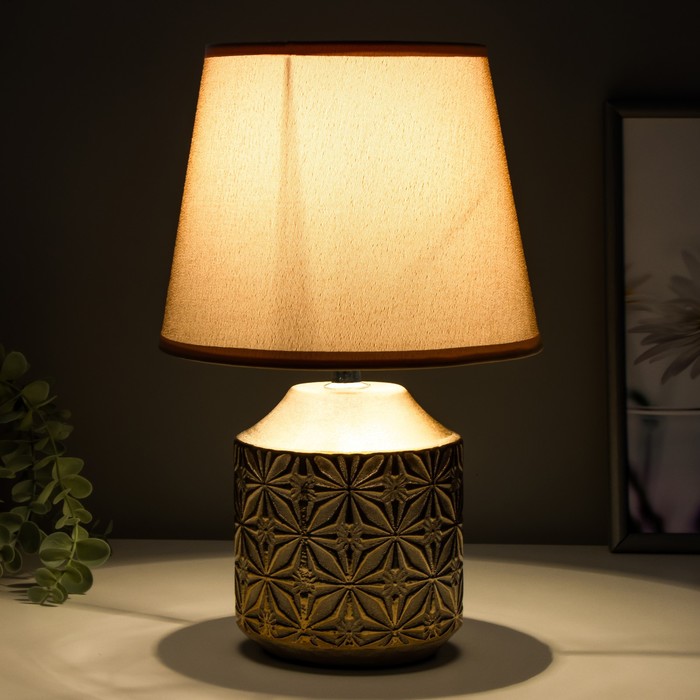 Золотой свет для уютного интерьера! Настольная лампа «Бэсфорд» с текстильным абажуром — это классический светильник для создания теплой и спокойной атмосферы в спальне или гостиной. Лампа дает мягкий направленный вверх свет, который не режет глаза и создает комфортное освещение для чтения и отдыха.