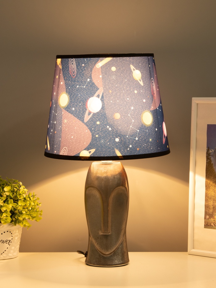 Свет с выразительной формой! Настольная лампа с фигурой человека и цоколем E27 — это осветительный прибор, в котором функциональность сочетается с художественным замыслом. Серебристое керамическое основание и насыщенный синий конусный абажур создают контраст, который работает в пользу интерьера, а не против него.