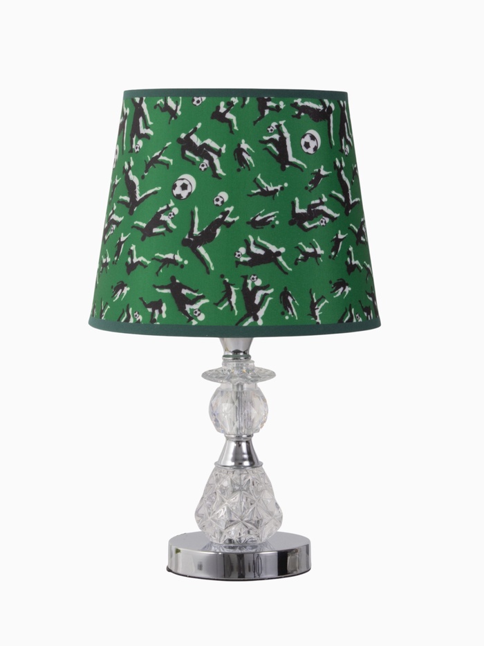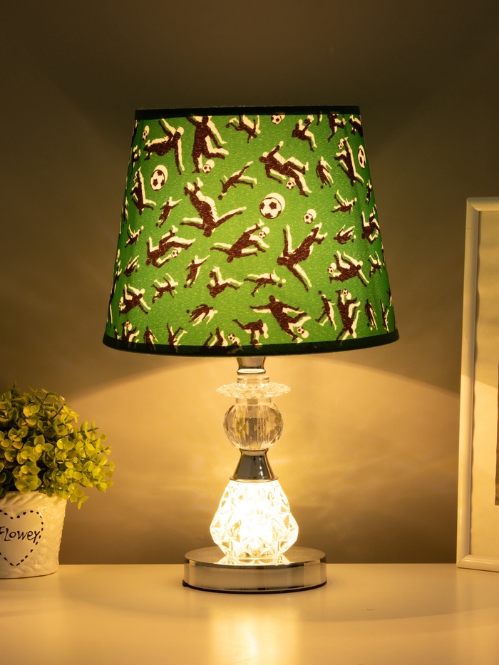 - Зелёный абажур в цветной гамме: Конусный рассеиватель из пластика окрашен в насыщенный зелёный тон и направляет свет в стороны. Такое освещение создаёт уютную, но бодрящую атмосферу — подходит как для вечернего отдыха, так и для фонового света в дневное время.