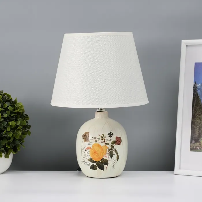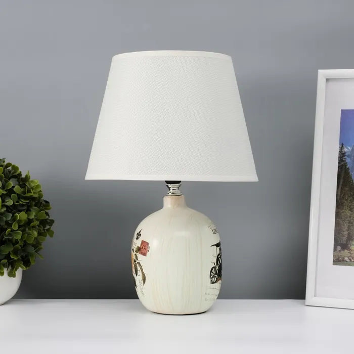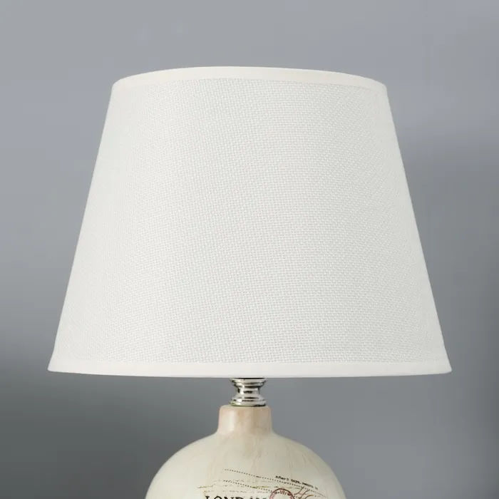 Эта настольная лампа с абажуром станет стильным акцентом в вашем интерьере. Белое керамическое основание и текстильный плафон в светлых тонах создают атмосферу уюта и гармонии. Компактные размеры делают её идеальной для использования на столах, тумбочках или в качестве ночника.