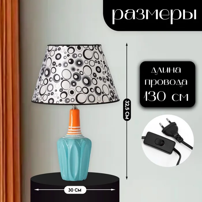 Настольная лампа с абажуром RISALUX «Аджена», Е27, 40 Вт, круги, 30×30×32.5 см — Характеристики