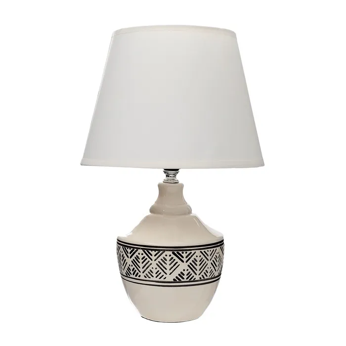 Эта настольная лампа с абажуром станет отличным дополнением вашего интерьера, придавая ему уют и стиль. Бежевое керамическое основание в сочетании с белым текстильным абажуром создает атмосферу тепла и света, подходящую для различных помещений. Компактные размеры делают её идеальным выбором для использования на столах, тумбочках или полках.