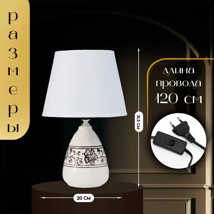 Настольная лампа с абажуром RISALUX «Андо», Е14, 40 Вт, белый, 20×20×31.5 см — Характеристики