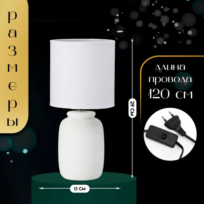 Настольная лампа с абажуром RISALUX «Анджело», Е14, 40 Вт, белый, 13×13×29 см — Характеристики