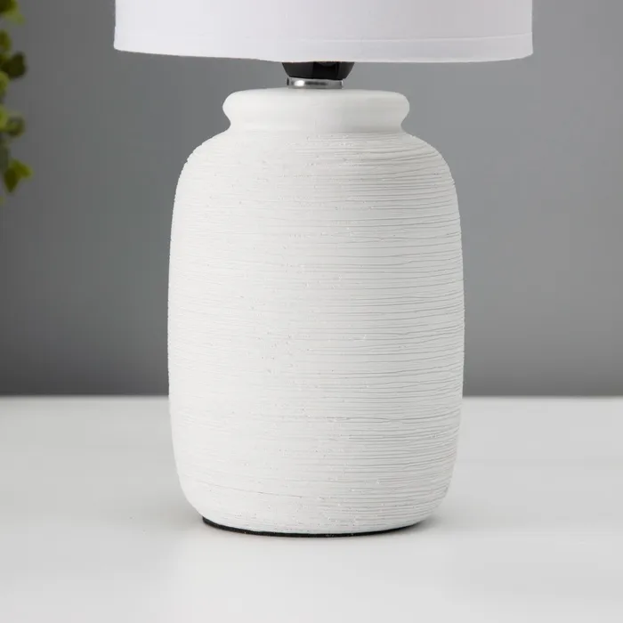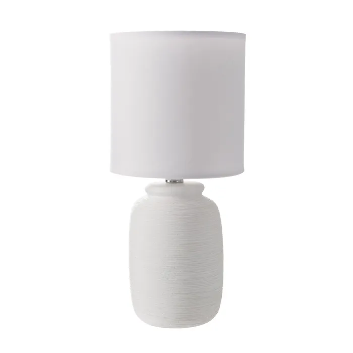 Эта настольная лампа с текстильным абажуром станет изящным акцентом в вашем интерьере. Белый цвет и лаконичный дизайн делают её универсальным решением для любого помещения, будь то спальня, гостиная или кабинет. Она создаёт мягкий свет, идеально подходящий для чтения или расслабления.