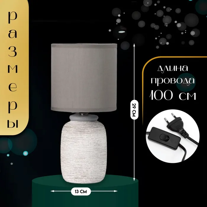 Настольная лампа с абажуром RISALUX «Анджело», Е14, 40 Вт, серый, 13×13×29 см — Характеристики