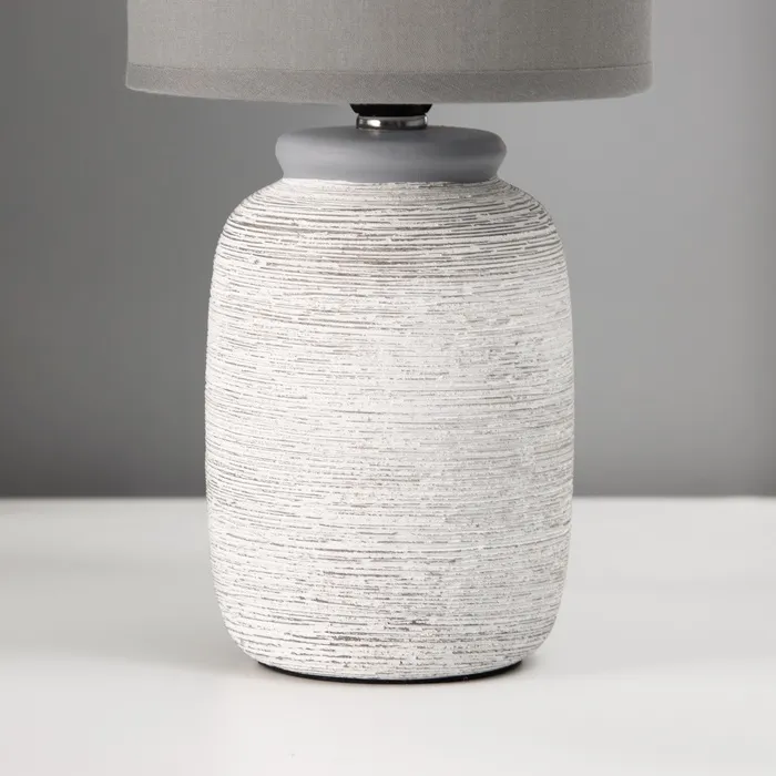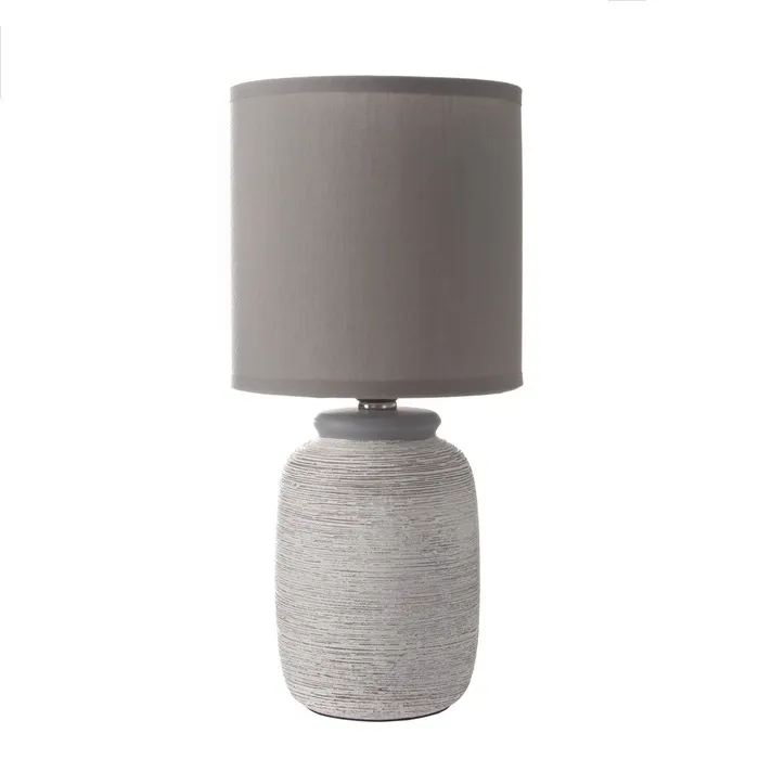 Эта настольная лампа с текстильным абажуром станет стильным дополнением вашего интерьера. Серый цвет и лаконичный дизайн делают её идеальным выбором для создания уютной атмосферы в любом помещении, будь то спальня, кабинет или гостиная. Она обеспечивает мягкое освещение, подходящее для чтения и отдыха.