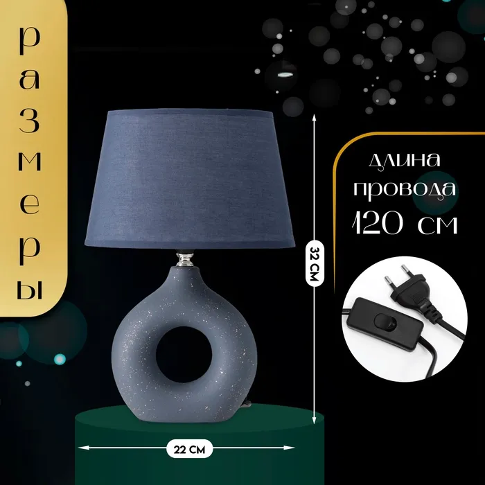 Настольная лампа с абажуром RISALUX «Анжелика», 1×40 Вт, Е14, синий, 22×22×32 см — Характеристики