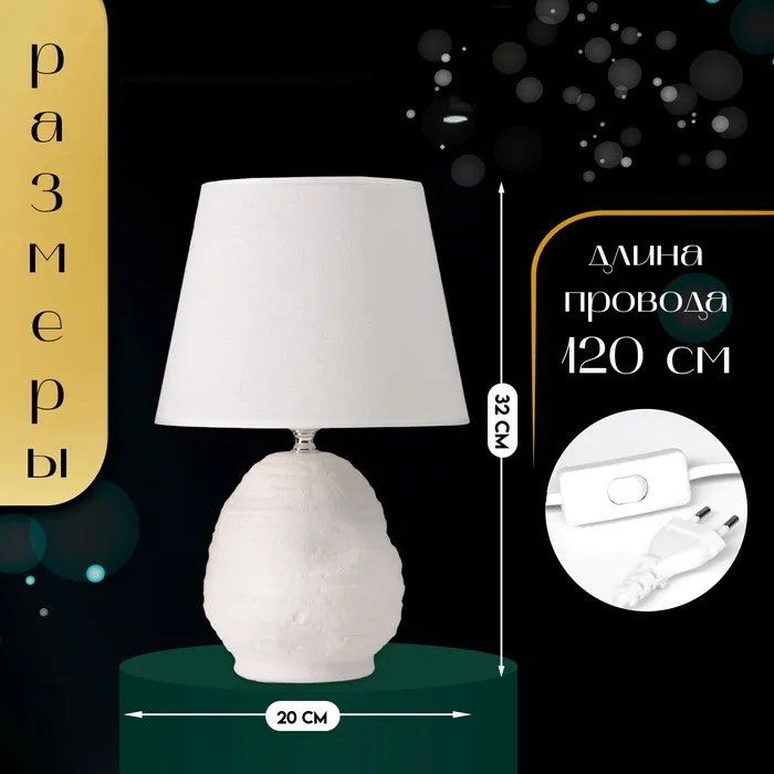 Настольная лампа с абажуром RISALUX «Аризона», 1×40 Вт, Е27, белый, 20×20×32 см — Характеристики