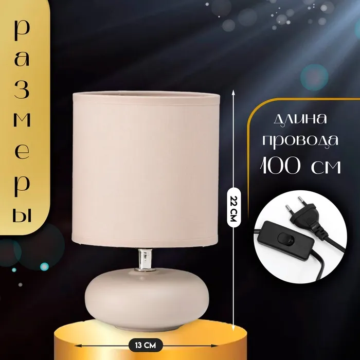 Настольная лампа с абажуром RISALUX «Ассенса», Е14, 40 Вт, серый, 13×13×22 см — Характеристики