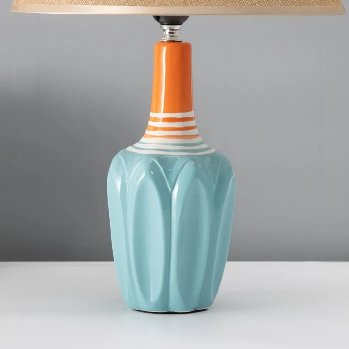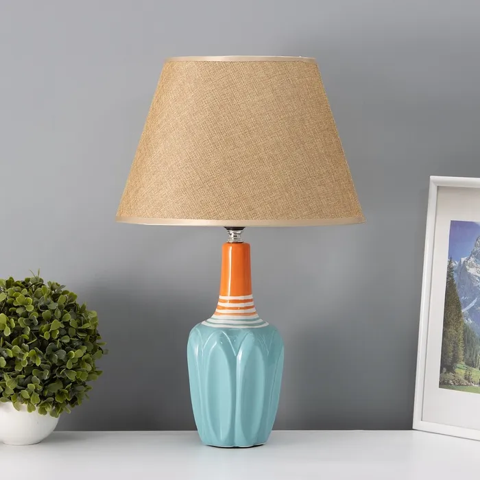 Эта настольная лампа с абажуром станет стильным акцентом в вашем интерьере. Голубое керамическое основание и бежевый текстильный абажур создают гармоничное сочетание, которое отлично впишется в любой дизайн. Она идеально подходит для освещения рабочего пространства или создания уютной атмосферы в комнате.