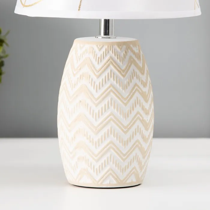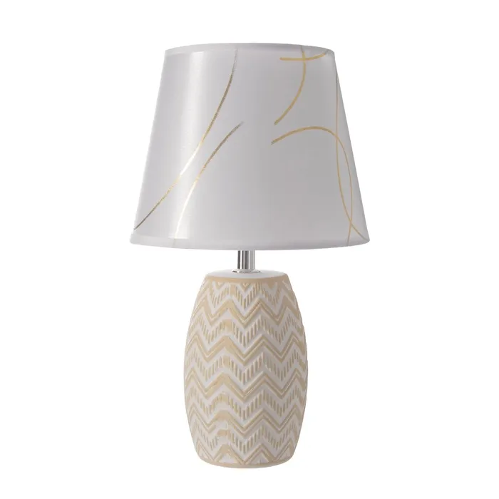 Эта настольная лампа с элегантным абажуром станет прекрасным дополнением вашего интерьера. Белое керамическое основание и золотистые акценты создают гармоничное сочетание, придающее помещению стильный вид. Мягкий свет, направленный вверх, наполняет пространство уютом и теплом.