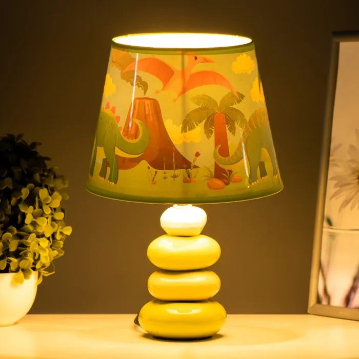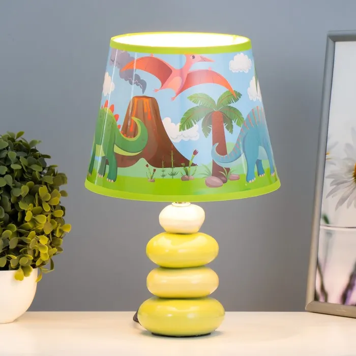 Настольная лампа с абажуром RISALUX «Динозавры», Е14, 15 Вт, зелёный, 20×20×30 см — Характеристики