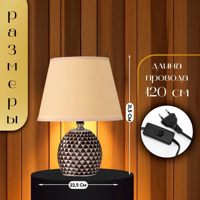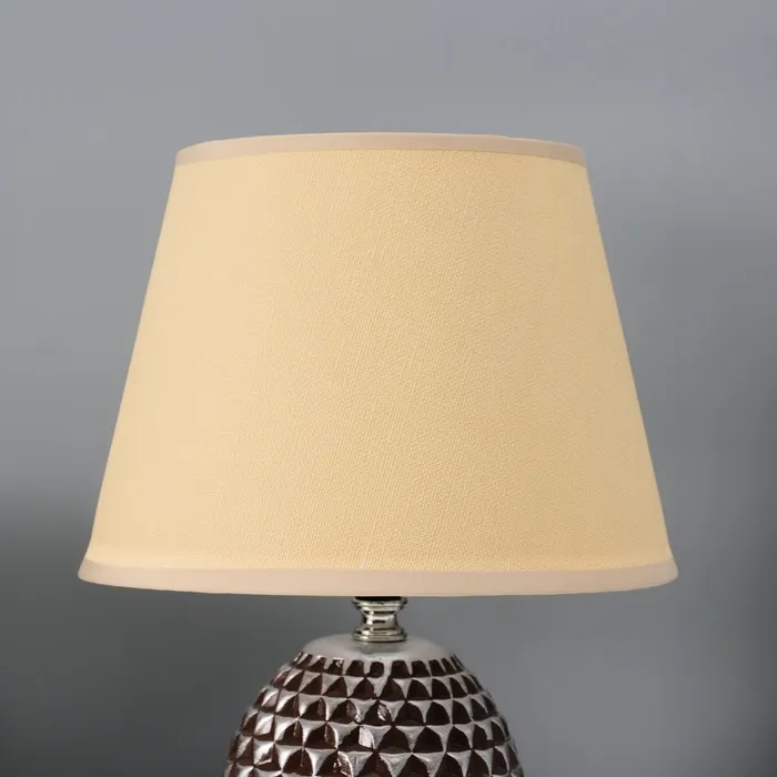 Эта настольная лампа с текстильным абажуром станет идеальным акцентом в вашем интерьере. Высота 31,5 см и размеры 22,5×22,5 см позволяют ей легко вписаться в любые пространства — будь то стол, тумбочка или рабочая зона. Коричневое керамическое основание придаёт лампе прочность, а бежевый абажур создает мягкий и уютный свет.