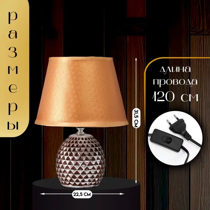 Настольная лампа с абажуром RISALUX «Джейн», Е14, 40 Вт, коричневый, 22.5×22.5×31.5 см — Характеристики