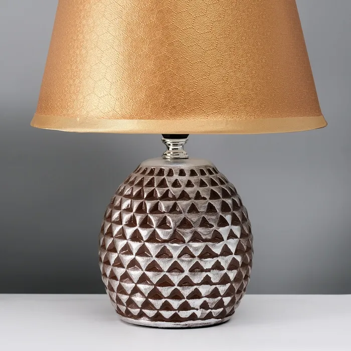 - Текстильный абажур в золотистых тонах создает уютную атмосферу.